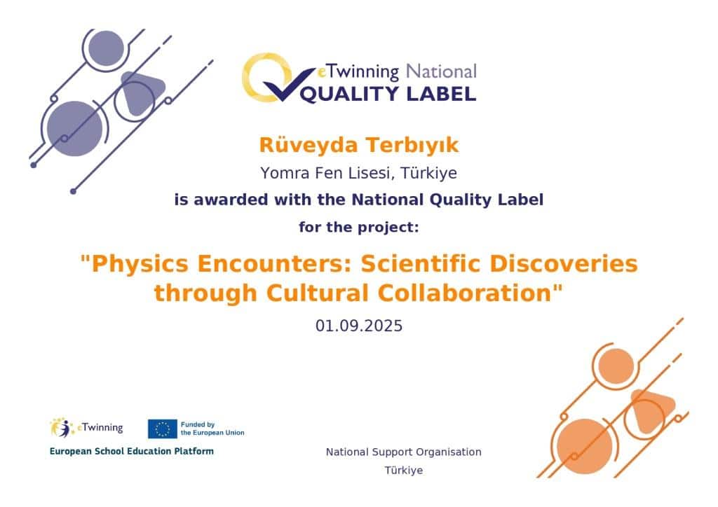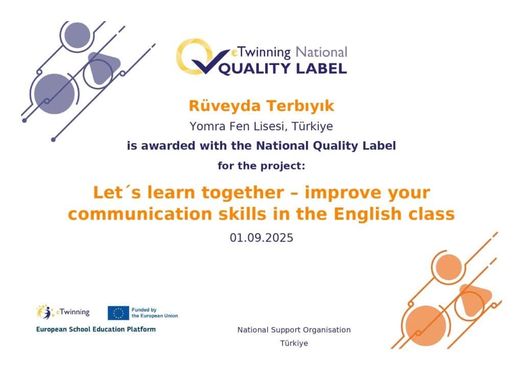 Okulumuz İngilizce öğretmenleri Gülşen Aksoy Çoker ve Rüveyda Terbıyık rehberliğinde öğrencilerimizle yürütülen 4 eTwinning projesi, Ulusal Kalite Etiketi almaya hak kazanmıştır.