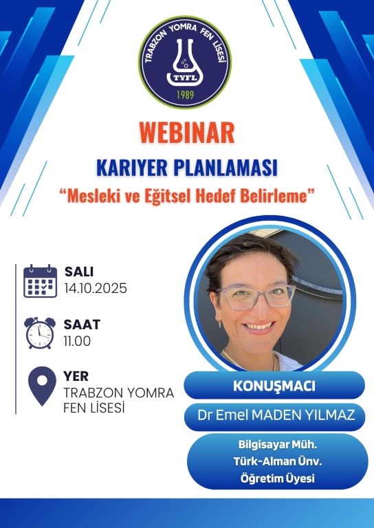 İstanbul Teknik Üniversitesi Bilgisayar Mühendisliği mezunu olan Emel Maden Yılmaz, Türk-Alman Üniversitesi öğretim üyesi, bir otomotiv firmasında birim yöneticisi, yaşam koçu ve iki çocuk annesi olarak görev yapmaktadır. Yılmaz, söyleşide öğrencilerimize üniversite ve meslek seçimi, hedef belirleme, kariyer yönelimi ve kişisel gelişim konularında deneyimlerini paylaşacaktır.